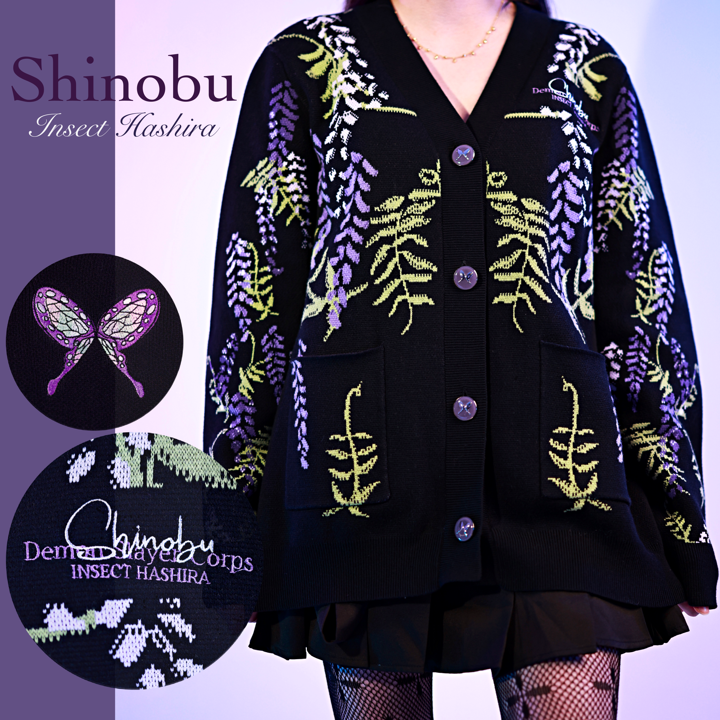 These cardigans are made from the highest quality 100% cotton yarns and feature very special design elements inspired by the favorite Demon Slayer characters. Each design does not only feature jacquard knitted patterns but also luxurious embroidered elements & custom rust free buttons. The sweaters are some of the most special items we ever made because they are made with the intarsia knitting technique that is creating the hand-crochet look and feel.