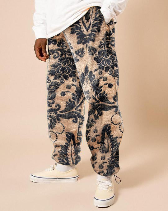 Retro trend street print polar fleece men's casual pants