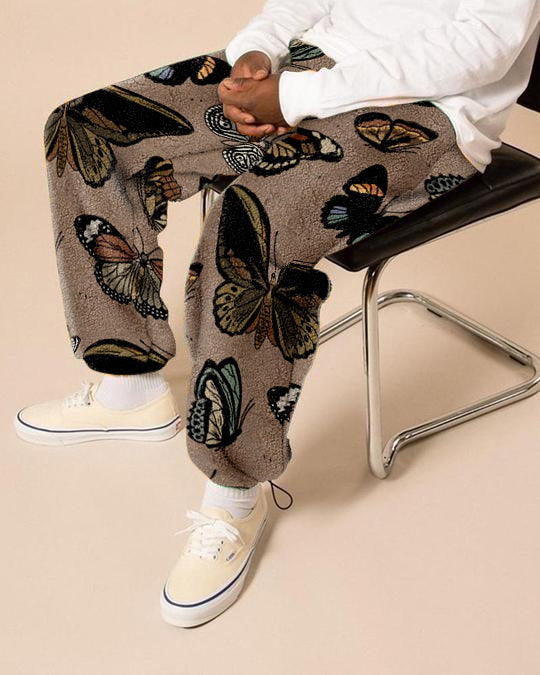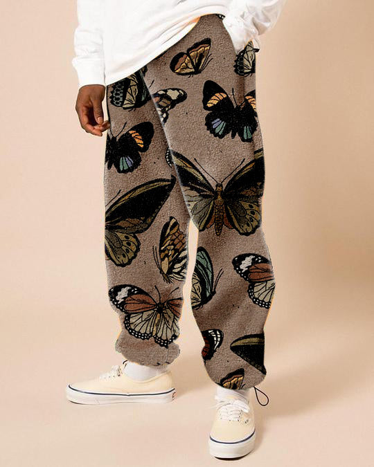 Vintage street style butterfly print fleece trousers