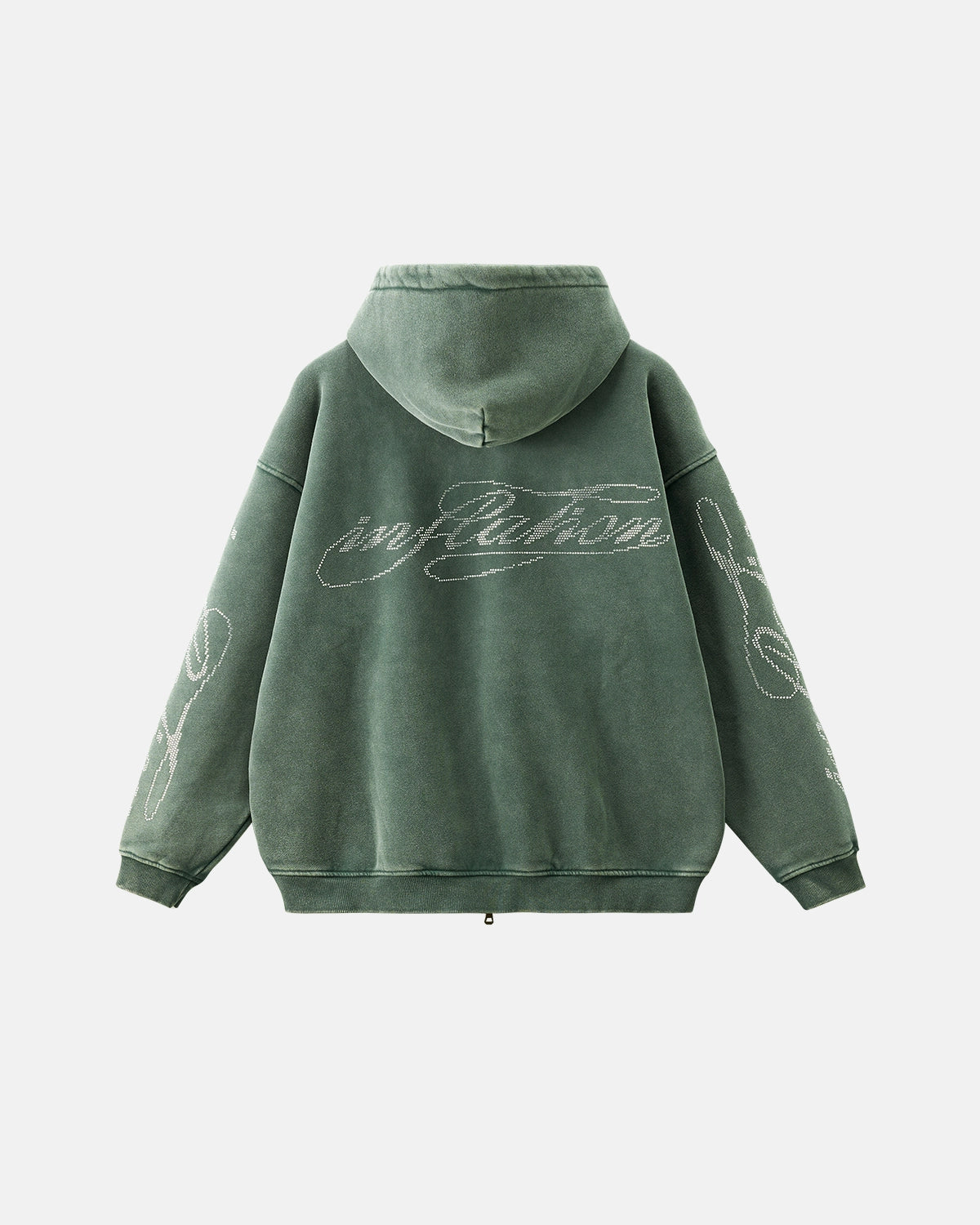 Rhinestone Distressed Washed Zip Up Hoodies