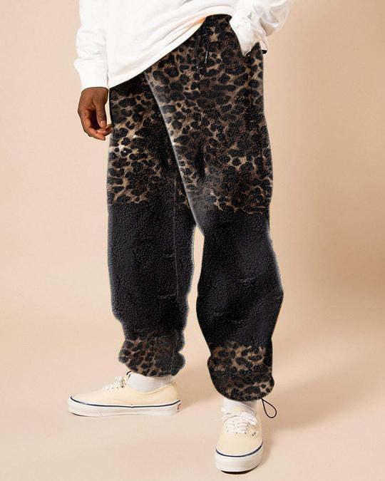 Fashion trend leopard print contrast color fleece men's casual pants