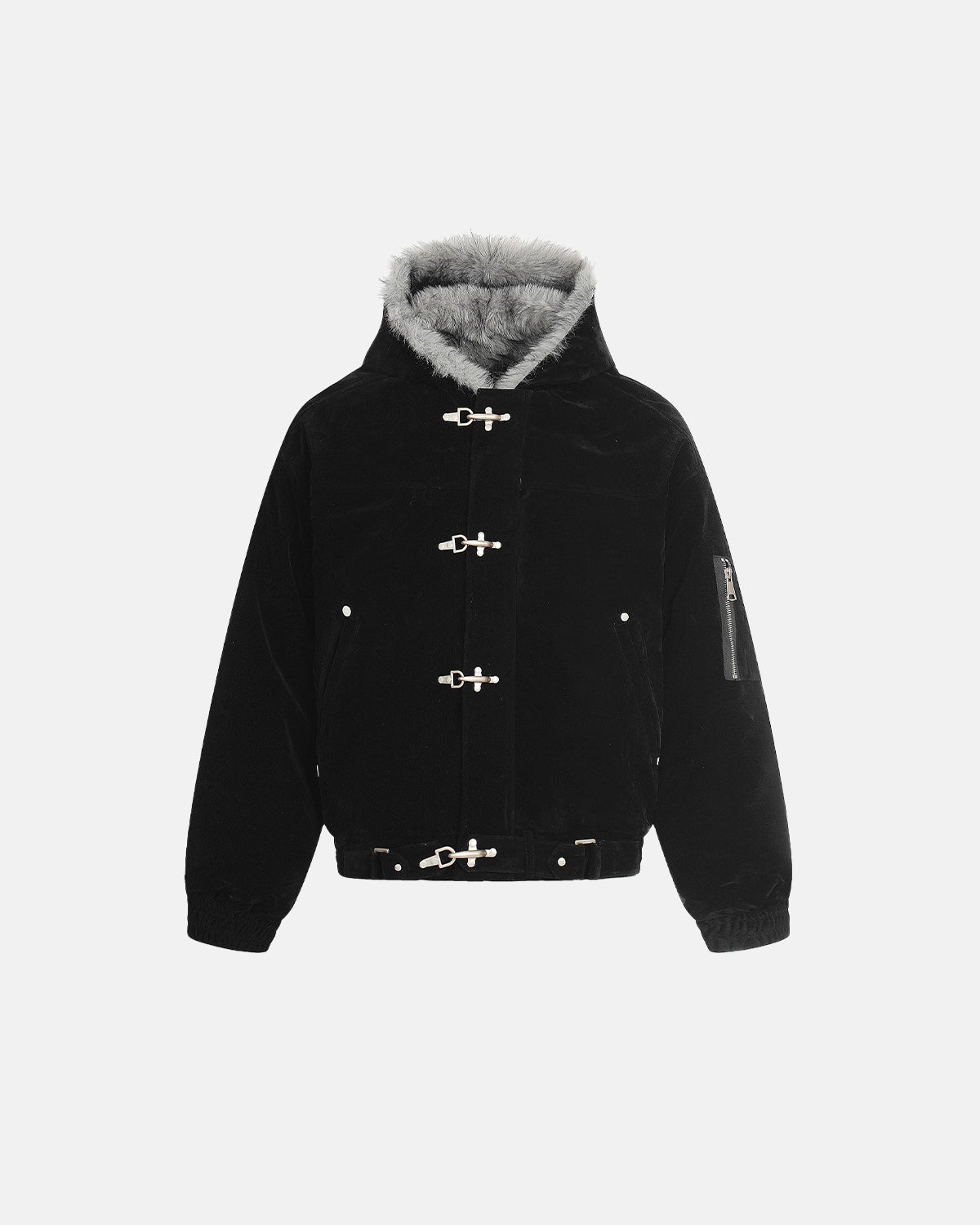 Faux Fur Lined Clasp Bomber Jacket
