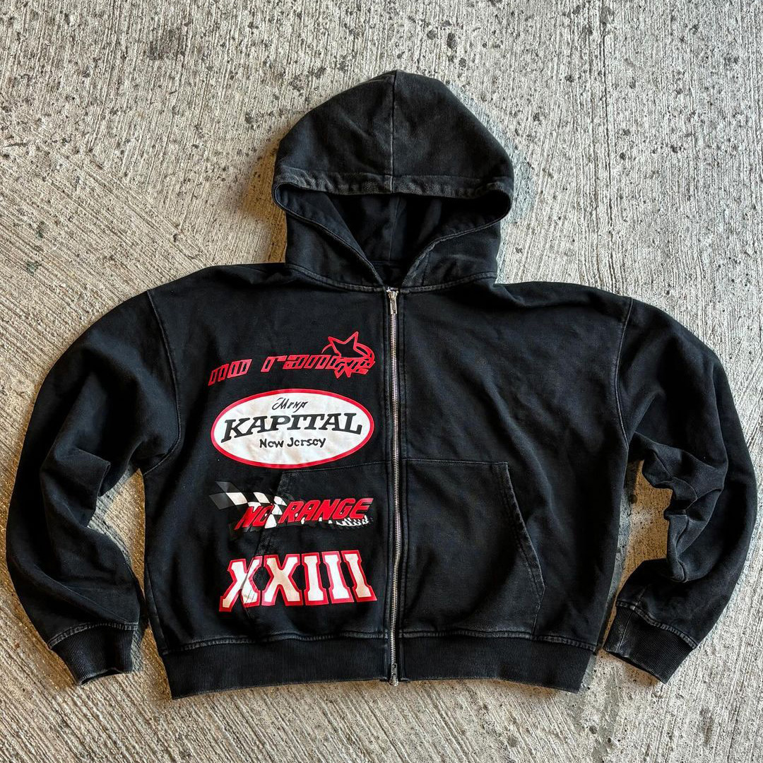 Letter Multi-element Print Long Sleeve Hoodies
