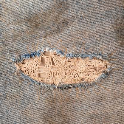 14.5oz denim / 100% cotton / embroidered patch / embedded crochet detailing / mud wash / baggy fit