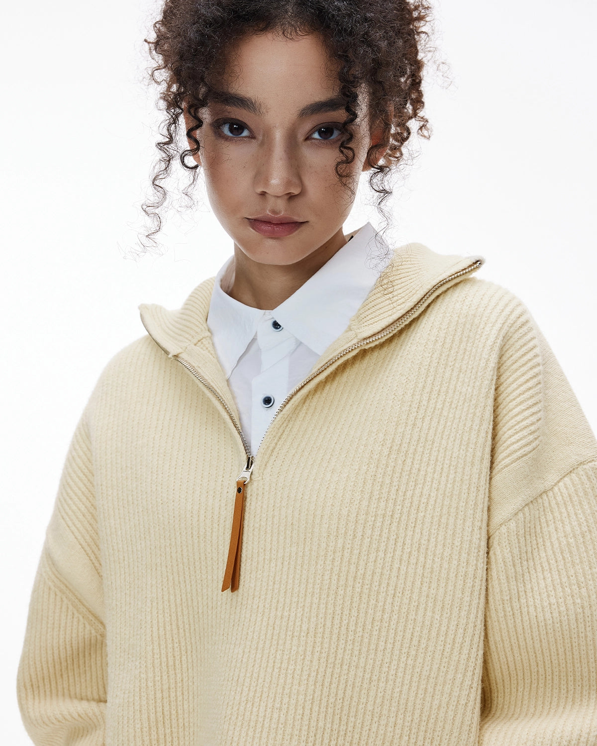 INFLATION mock neck quarter-zip wool blend sweater, designed for winter streetwear with a vintage old money vibe. Soft and warm wool mix for comfort, textured knit for premium style. quarter-zip collar offers versatile looks—zip up for warmth or wear open for a relaxed fit. Easy to pair with streetwear layers or daily outfits.