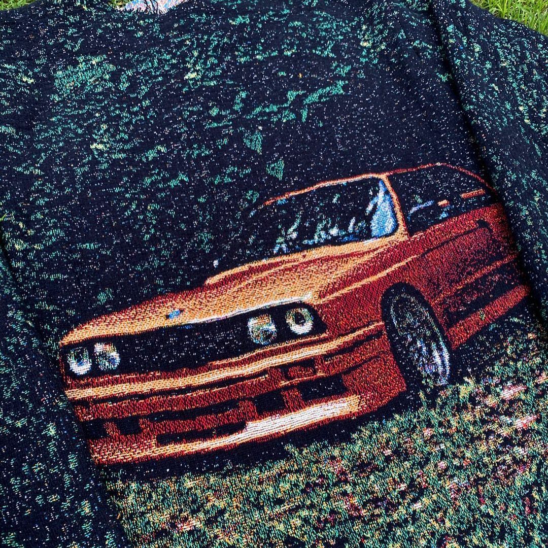 Personalized fashion retro car print crew neck sweatshirt