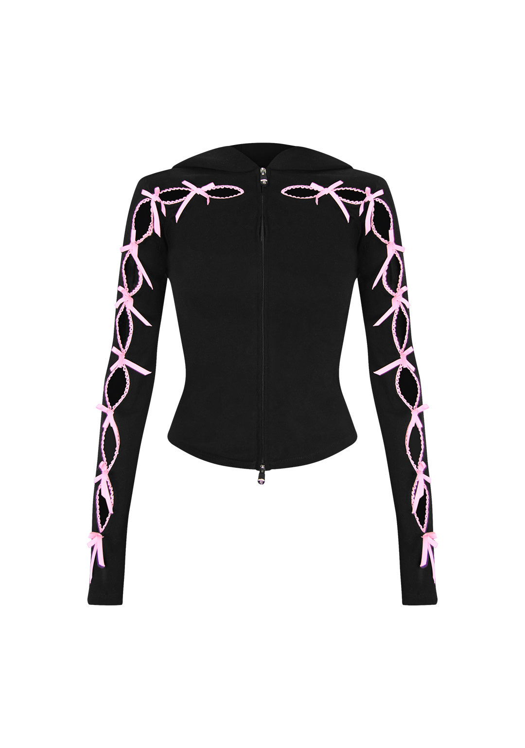 PRINC355 RIBBON SCULPT STRETCH ZIP HOODIE BLACK