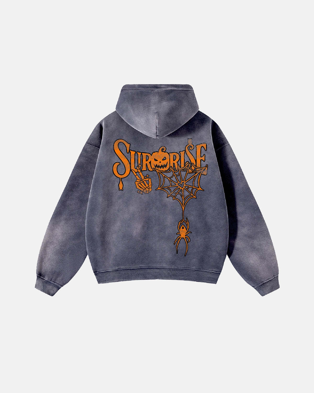 Pumpkin Graphic Stone Wash Zip Up Hoodies