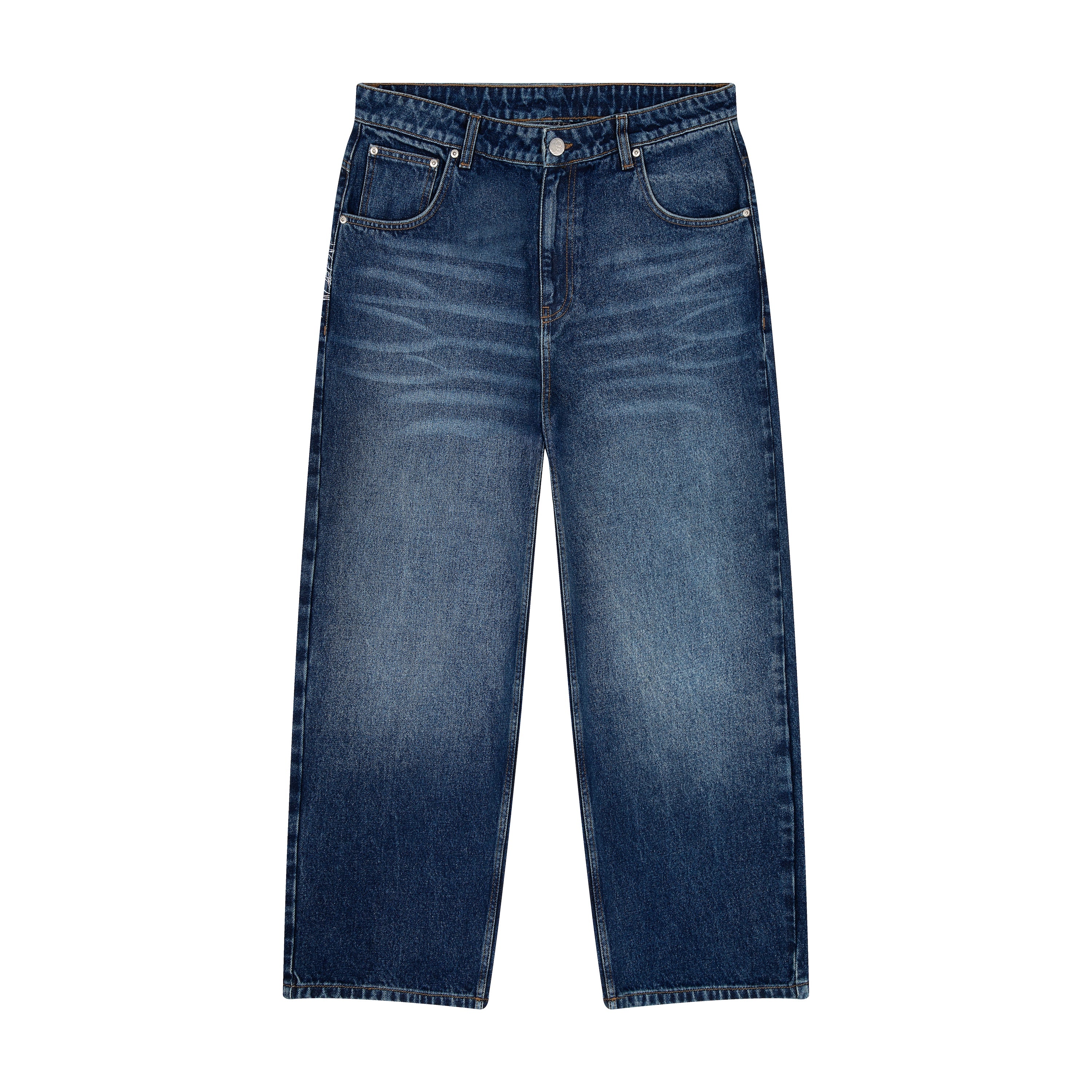 14,5 oz washed denim / 100% cotton / embroidery on back pocket / embroidered leather patch with deboss print / baggy fit / fits true to size